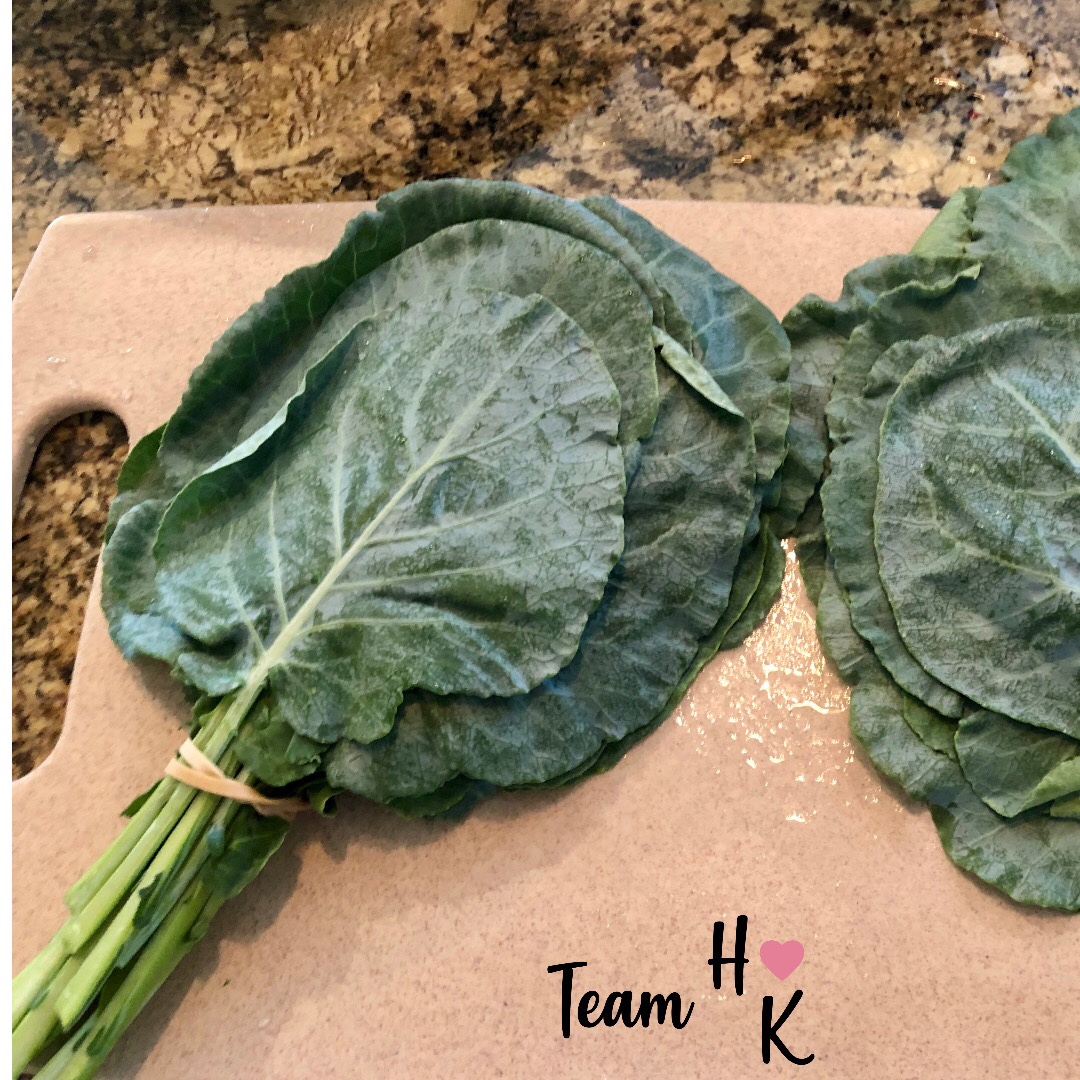 Collared greens are a loose leaf species, they don’t grow as a head but as individual dark colored edible leaves. They are typically found in small bundles in the refrigerated section of the produce department. Smaller leaves are more tender, larger leaves are tougher and you would want to cut the stem out and perhaps some of the center rib.