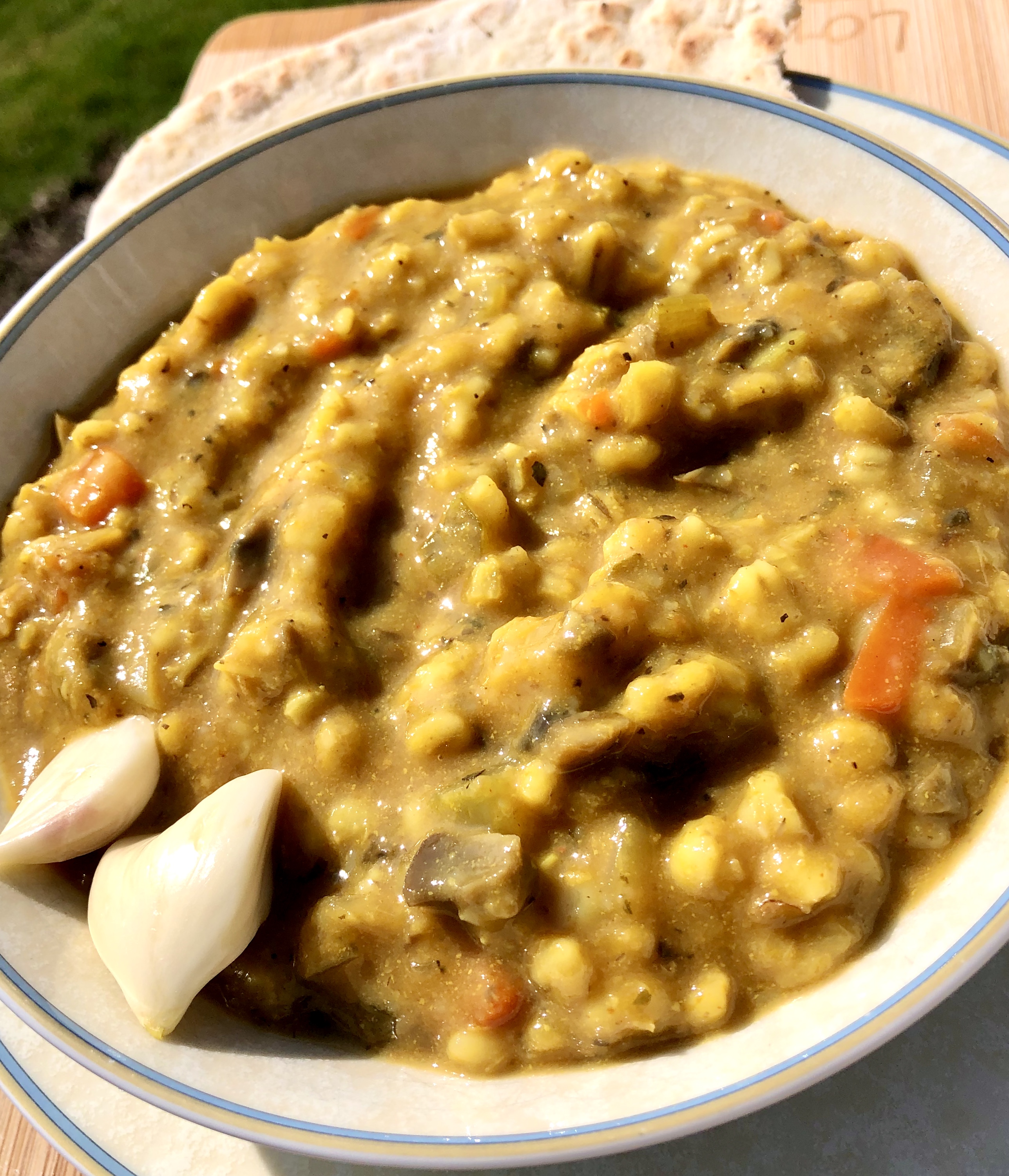 Flu Season Garlic Soup! I’ve been working on this for a couple of weeks and each week I become more concerned about boosting my immune system. I got the flavor right and then came the consistency. I wanted something thick and creamy (non-dairy creamy of course). Last weeks batch was spot on but I shared my bounty through a Heartie kitchen delivery and forgot to take any photos. Yes, my house has smelled of garlic for weeks, no vampires here! I would like to think this soup will make us immune to all viruses, but alas I know better.