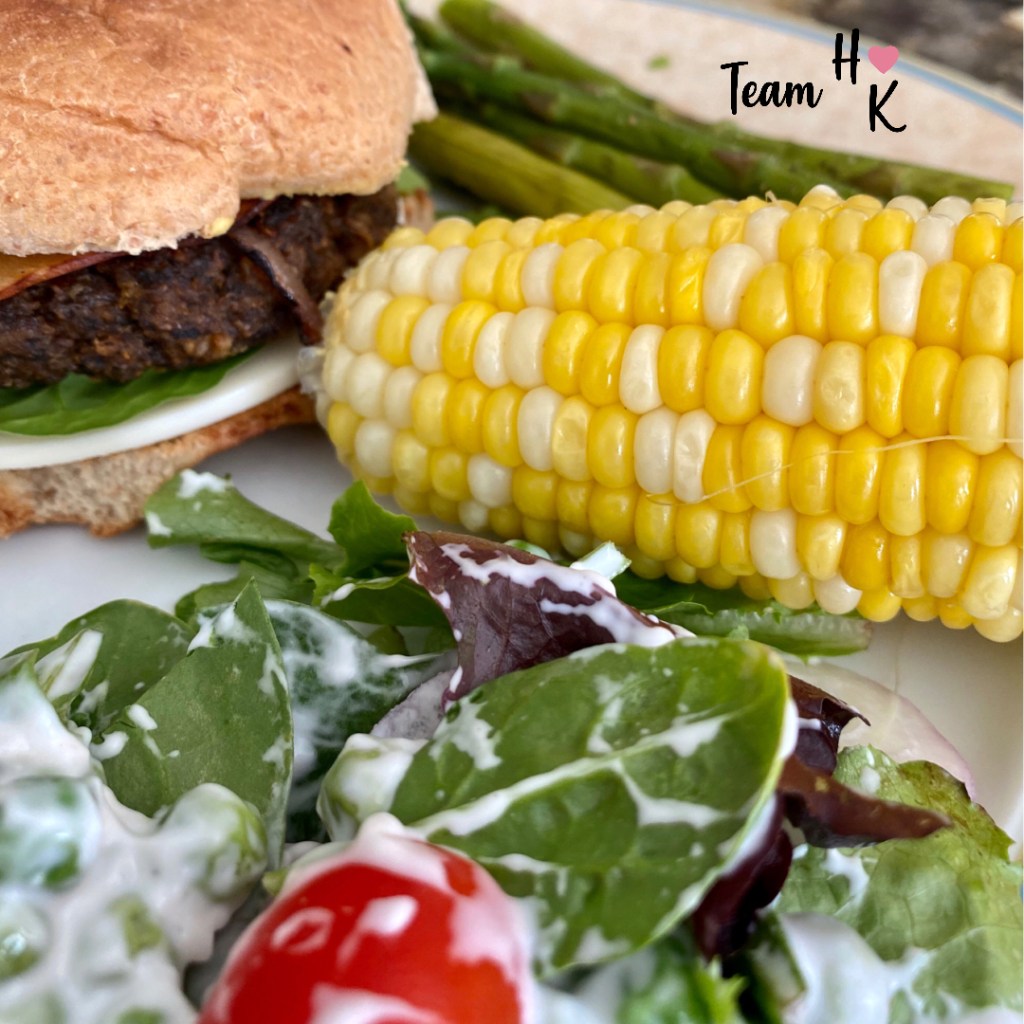Finding corn on the cob at my grocery yesterday was like finding a special treat. I don’t do anything special except clean all the silk off. Toss them in some boiling water for 12 minutes and they are ready to go. We enjoyed them with Miyokos Cultured Vegan Butter.