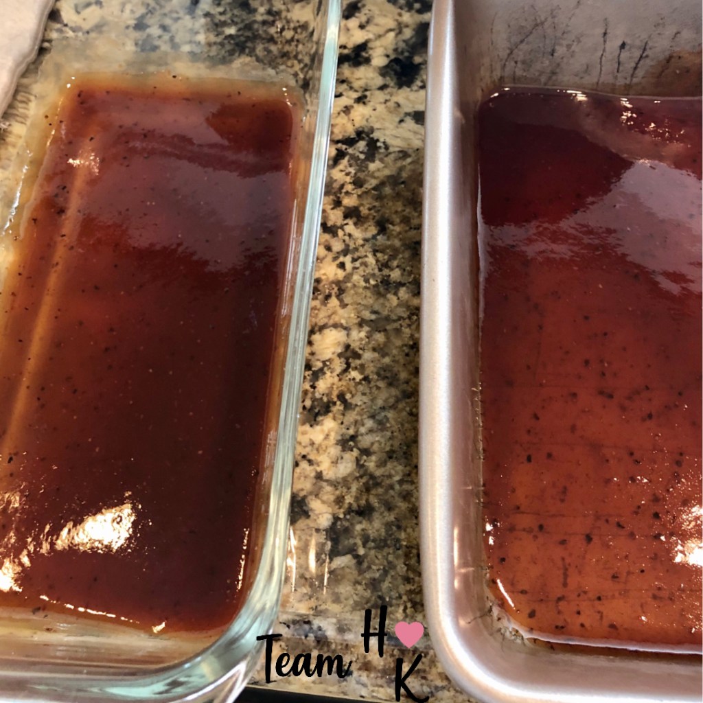 I prepare the loaf pan by covering the bottom with BBQ sauce, this prevents the meatloaf from sticking to the bottom. This works for both a metal or a glass loaf pan. This recipe makes enough for ONE loaf pan. Many times I double the recipe in order to make two loaf pans and have left overs for lunch the next day or another dinner during the week. I always find the flavors seem to be more intense the second time around.