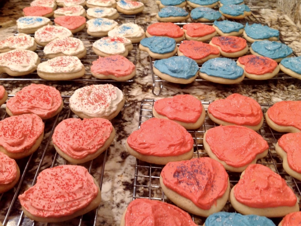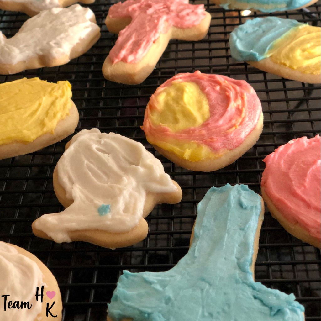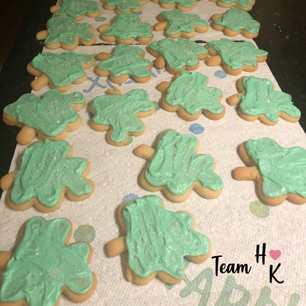 11. Allow cookies to cool and then decorate to you liking. Once the frosting has dried cookies can be stored with parchment paper between layers.