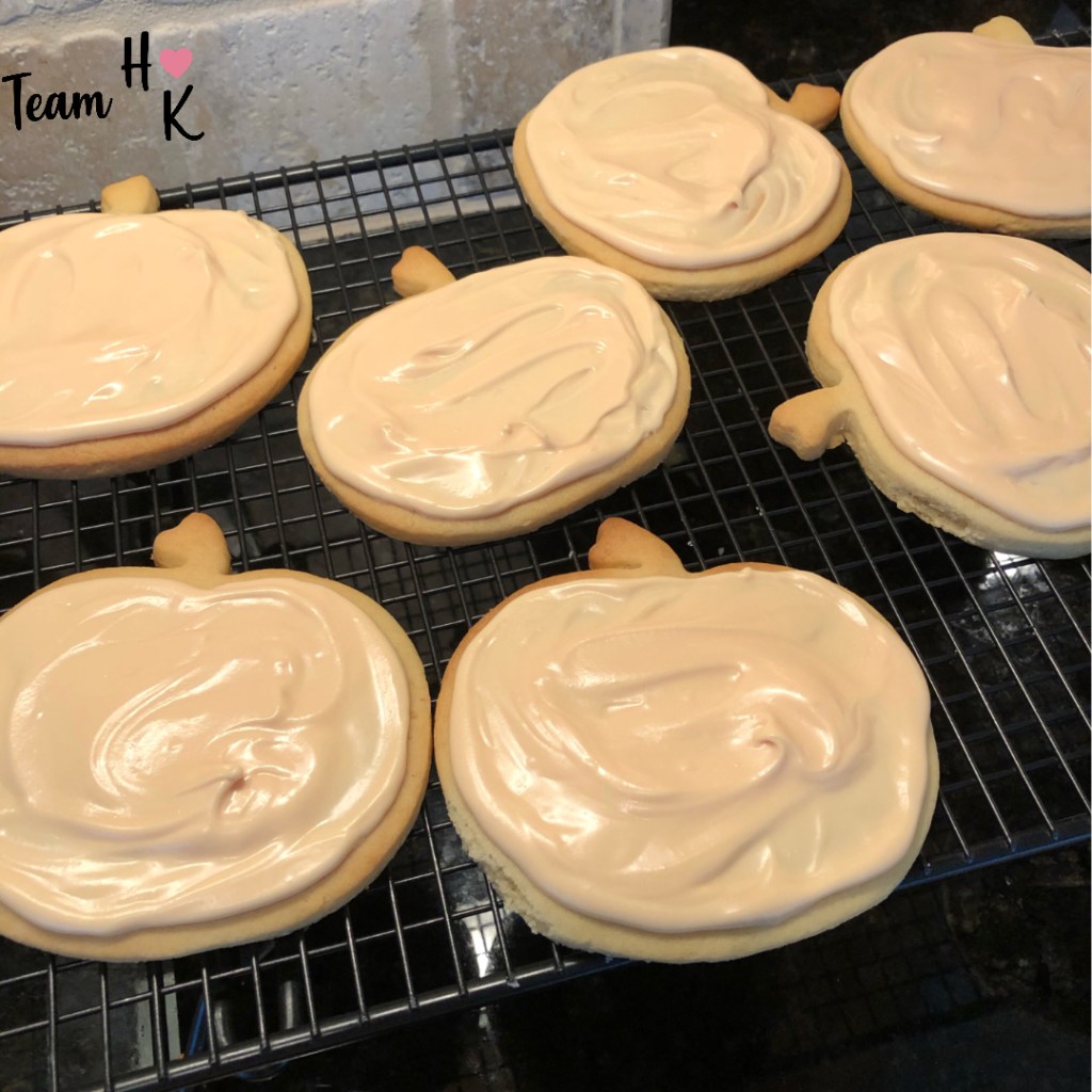 Halloween pumpkins, freshly frosted using dye free food coloring.