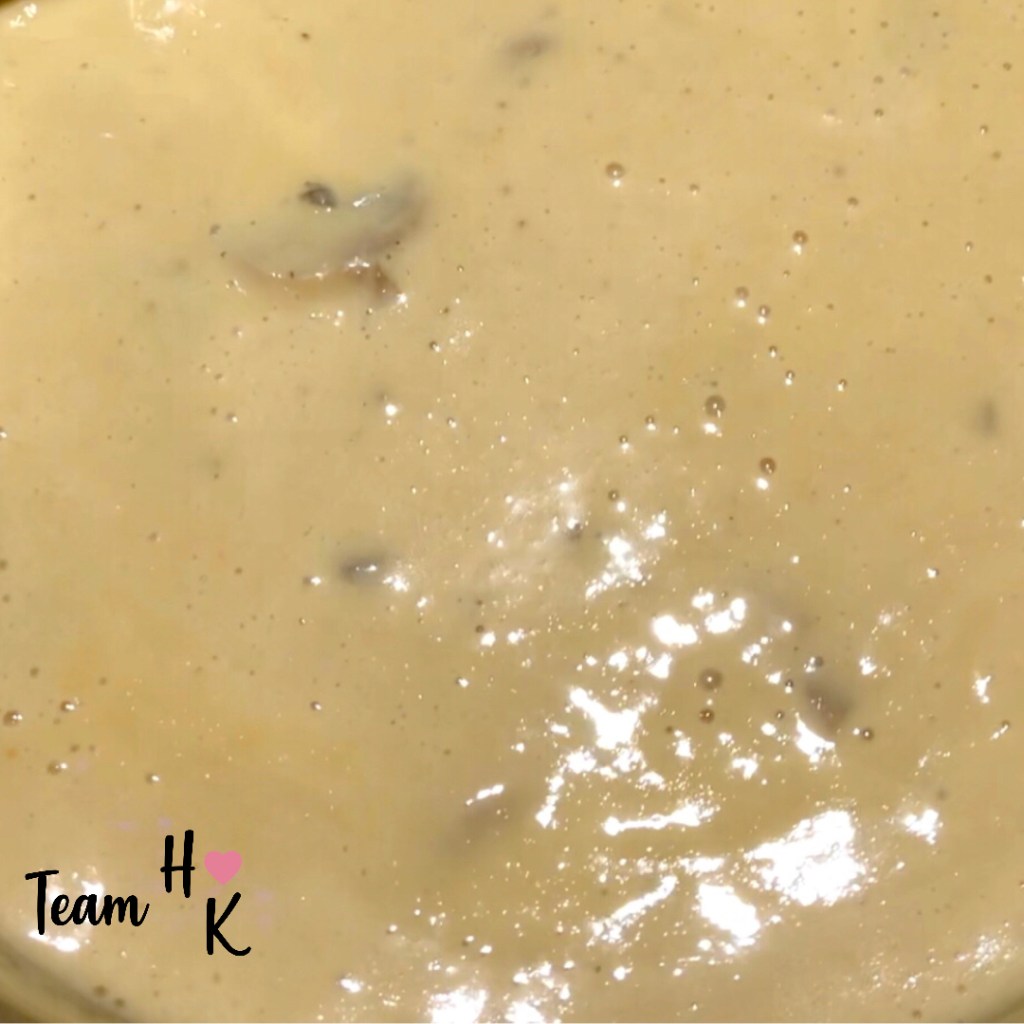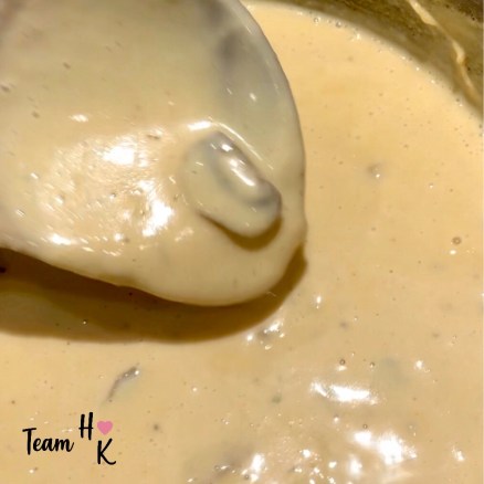 - Add 2 cups of Cashew Cream Sauce and stir until mixture has thickened up and warmed though.