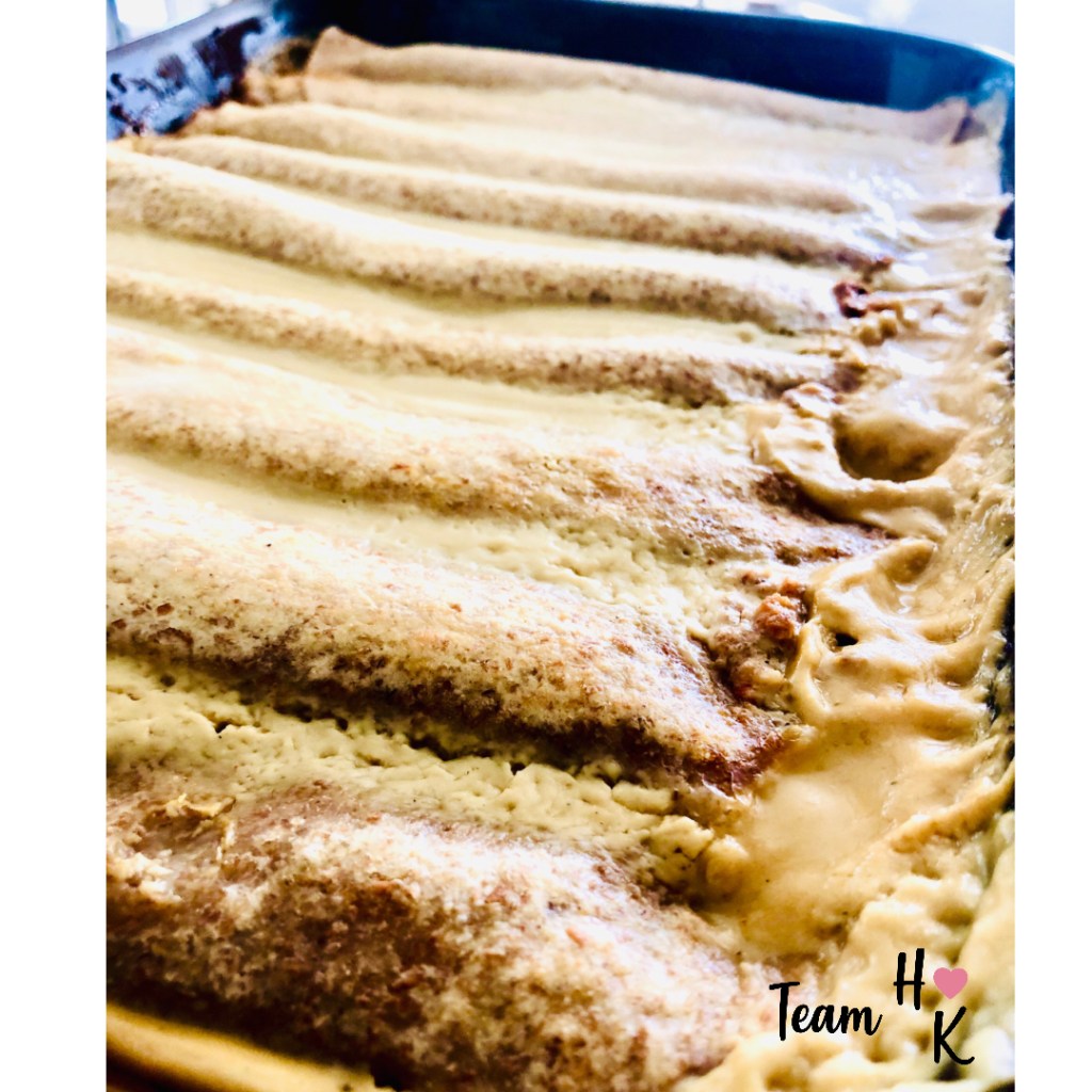 - Pour 2 cups of cashew cream sauce over the pan of enchiladas.