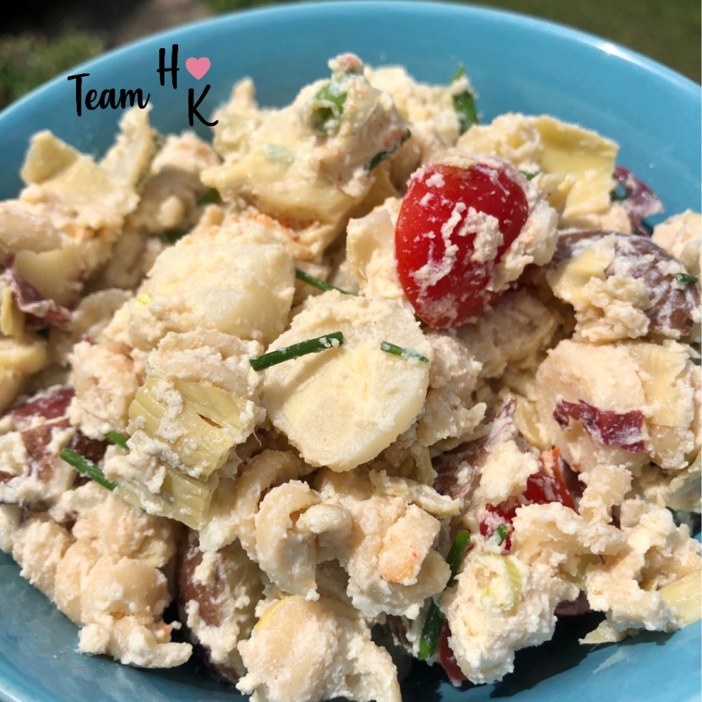 Hey heart healthy friends! We tried out this potato salad and it was a hit with everyone. It makes a batch big enough for a summer picnic. I doubled the recipe for our Fourth of July gathering so that we had plenty for a couple of meals. The second time around it seemed just a tad dry so I added a little plant based milk and stirred adding a bit of milk and then stirring until it reached my desired creaminess.